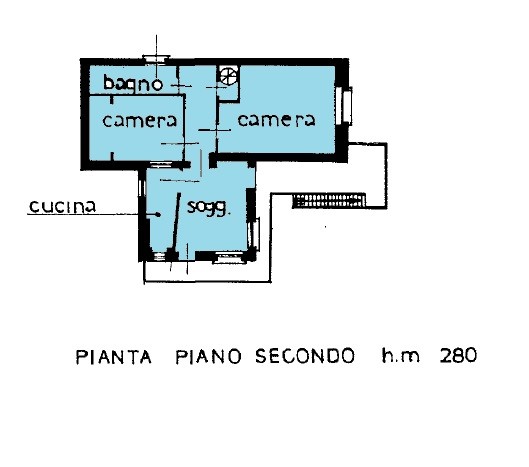 Al piano secondo , troviamo due camere , soggiorno , bagno, cucinino .